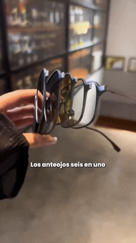 Con 6 lentes intercambiables para cada momento del día — sin cargar varias monturas, sin gastar de más y sin complicaciones. Todo lo que necesitas para ver bien y lucir bien, en segundos y desde casa.